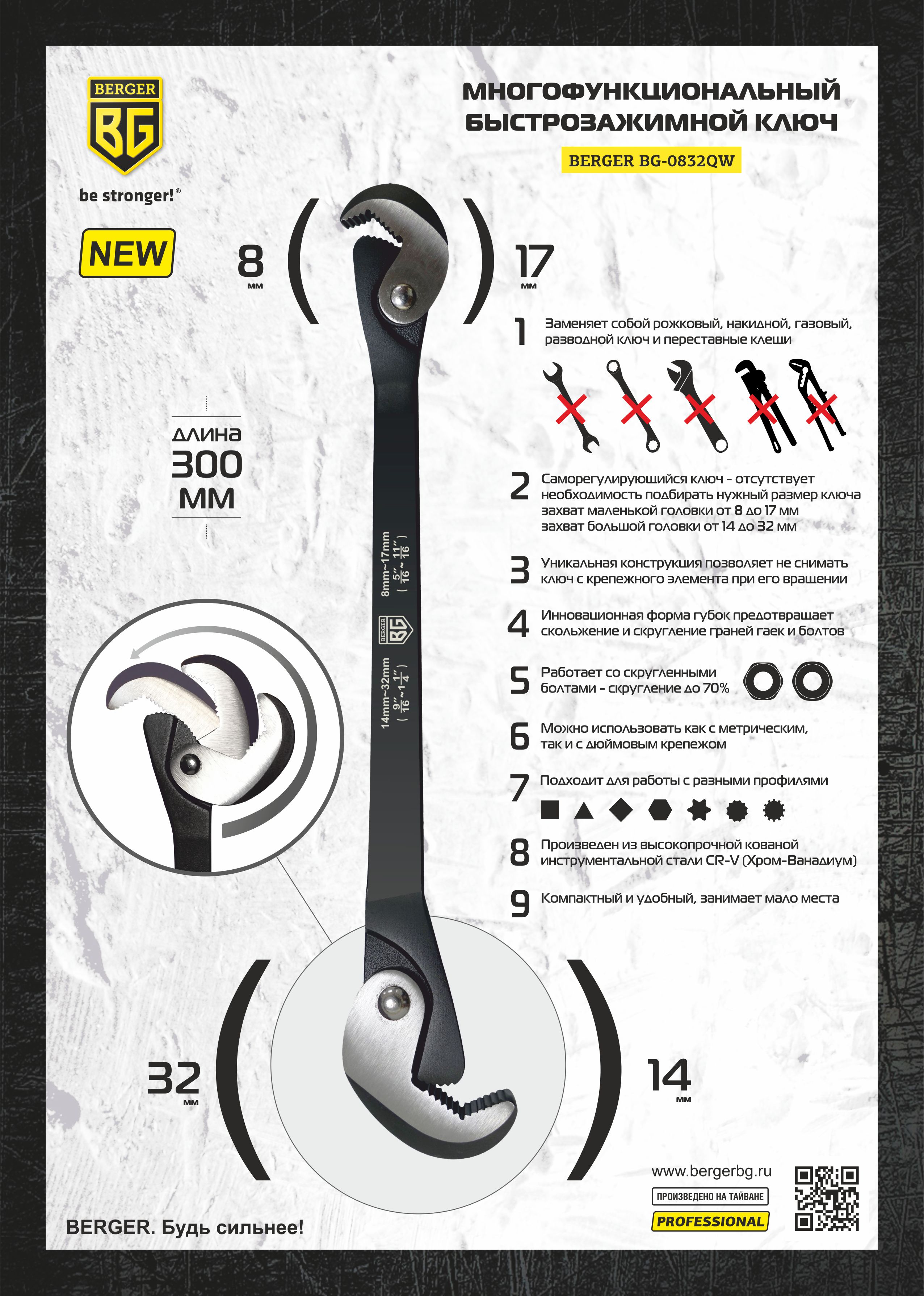 - Многофункциональный быстрозажимной гаечный ключ Berger BG-0832QW
